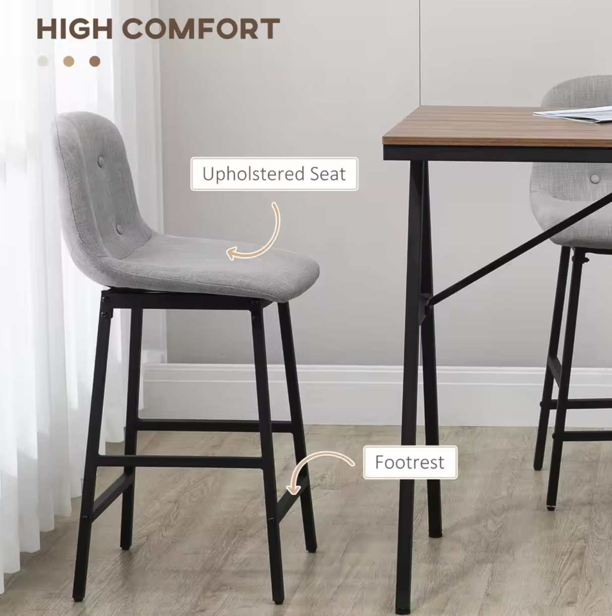 • Barkrukken met zachte vulling en bekleding in linnenlook