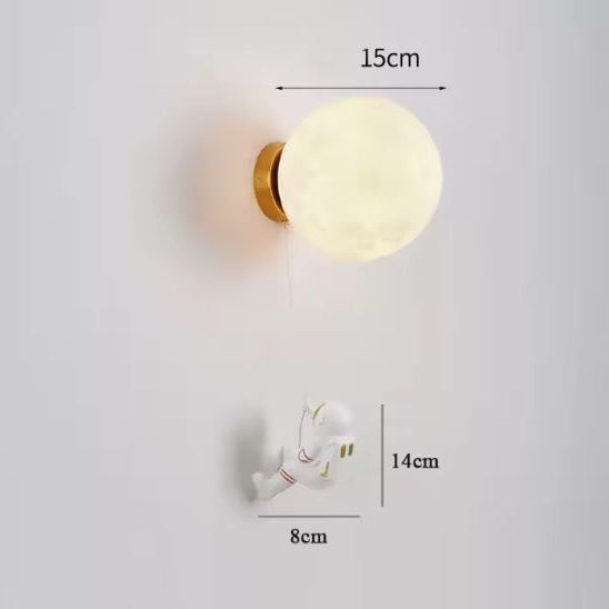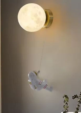 Breng de magie van de ruimte naar binnen met deze unieke astronaut wandlamp. Met een gedetailleerd astronaut ontwerp en een lampenkap die de maan imiteert, creëert deze lamp een sfeervolle en fantasierijke verlichting in elke kamer. Perfect voor kinderkamers, slaapkamers of als opvallend decoratief stuk in de woonkamer.