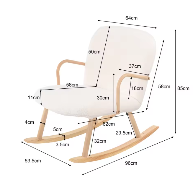 Beige Schommelstoel – Fauteuil met Houten Armleuningen en Zacht Kussen – Voor Woonkamer of Slaapkamer