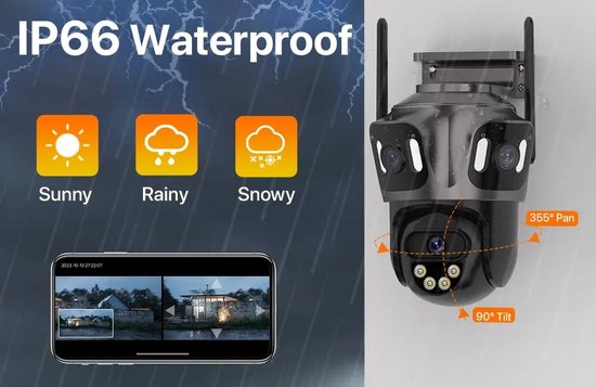 Deze camera is ontworpen om aan al je beveiligingsbehoeften te voldoen. Met een verbluffende 6K-resolutie van 6144 x 3160 pixels mis je geen enkel detail. De camera heeft een geavanceerde pan- en tiltfunctie van respectievelijk 355° en 90°, waarmee je een volledig overzicht krijgt van de omgeving. Met de ingebouwde bewegingssensor en nachtzichtfunctie krijg je ook in het donker heldere beelden. Bovendien biedt de camera een betaalde cloud-opnamefunctie om je opnamen veilig op te slaan.