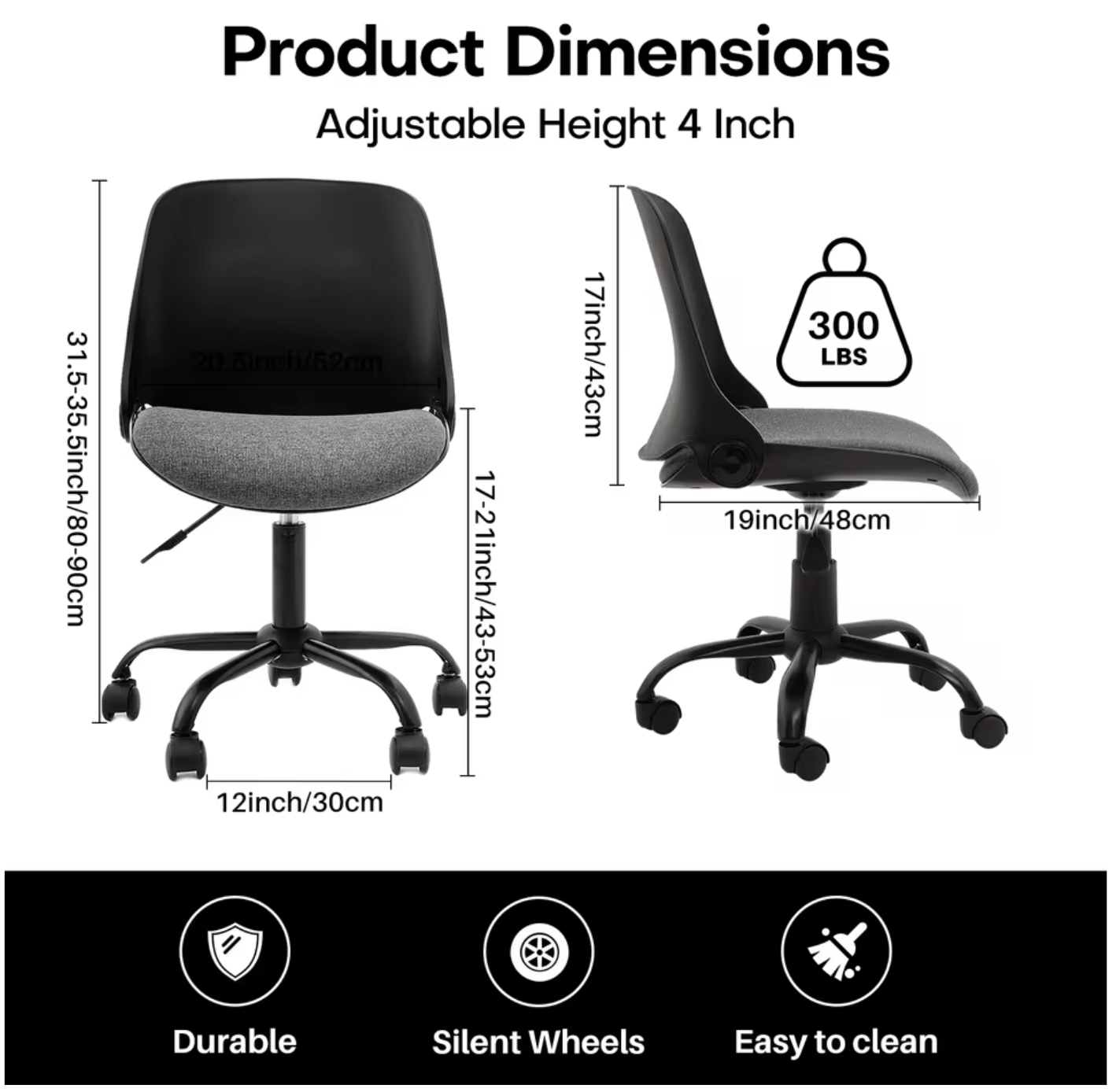 Bureaustoel Met Opvouwbare Rug – Verstelbaar – Armloos – Compact Ontwerp