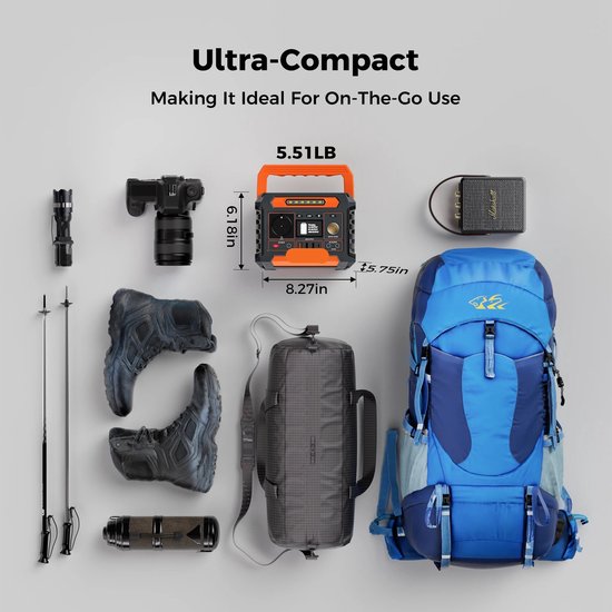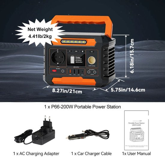 Of je nu gaat kamperen, een dagje uit bent of een noodstroomvoorziening zoekt voor in huis: met dit compacte en krachtige apparaat zorg je altijd voor betrouwbare energie. Deze draagbare powerstation levert tot 200W continue stroom en laat je bijna elk klein elektrisch apparaat eenvoudig aansluiten en gebruiken, waar je ook bent.
