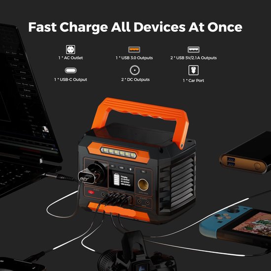 Ideaal voor het opladen van laptops, tablets, smartphones, kleine televisies, speakers en zelfs sommige motorische apparaten met een laag verbruik. Dankzij de slimme stroomregeling is dit product geschikt voor gadgets die nét iets meer kracht vragen bij het starten.