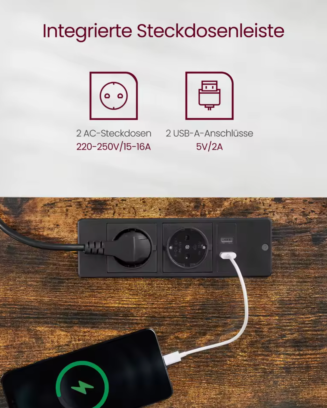 • Ingebouwde stekkerdoos met 2 stopcontacten en 2 USB-poorten