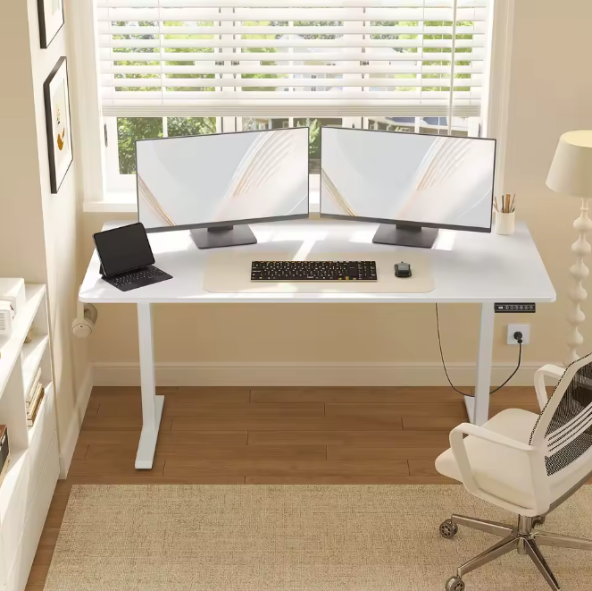Ervaar ultiem comfort en productiviteit met dit elektrisch in hoogte verstelbare zit-sta bureau. Met één druk op de knop wisselt u eenvoudig tussen zittend en staand werken. De stille motor, ingebouwde USB-oplaadpoort en geheugenfunctie maken dit bureau ideaal voor een ergonomische thuiswerkplek of kantooromgeving.