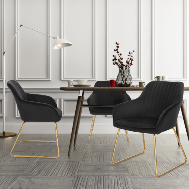 Geef je interieur een elegante en comfortabele uitstraling met deze fluwelen eetkamerstoel. De zachte bekleding, ergonomische rugleuning en stevige metalen poten zorgen voor zowel luxe als duurzaamheid. Dankzij de armleuningen en schuimvulling biedt deze stoel optimaal zitcomfort en is hij geschikt voor eetkamer, woonkamer, kantoor of café.
