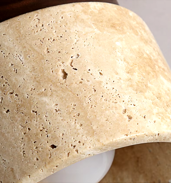 Deze lamp brengt rust, eenvoud en verfijning in elke ruimte. De combinatie van travertijn en hout straalt een tijdloze charme uit die zowel modern als klassiek aanvoelt. Of je nu je lobby, gang, balkon of restaurant wilt verlichten, deze lamp is de perfecte keuze voor wie zoekt naar een subtiele, luxe uitstraling met natuurlijke materialen.