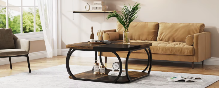 Deze industriële vierkante salontafel combineert een rustieke boerderijstijl met een modern design. Dankzij de twee lagen biedt deze salontafel ruime opbergmogelijkheden, terwijl het stevige metalen frame zorgt voor duurzaamheid en stabiliteit. Of je nu een grote of kleine woonkamer hebt, deze tafel past moeiteloos in elke interieurstijl.