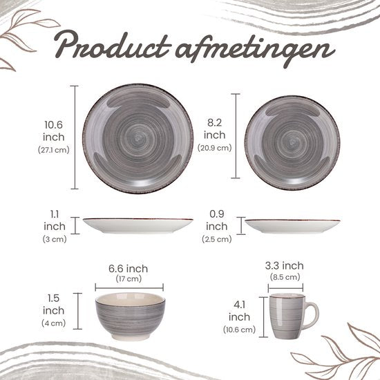 - Compleet servies: Deze uitgebreide set bevat alles wat je nodig hebt voor een complete eetervaring, van dinerborden tot soepborden, perfect voor elke gelegenheid.