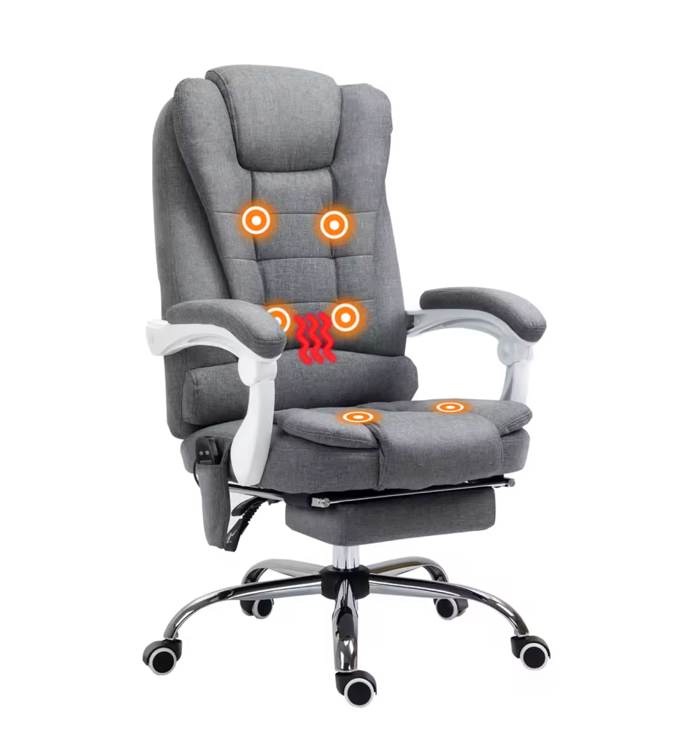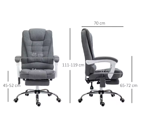 Ervaar ultiem comfort tijdens het werken met deze luxe massage bureaustoel met 6 massagepunten. Dankzij de verstelbare rugleuning, intrekbare voetsteun en verwarmingsfunctie biedt deze stoel de perfecte balans tussen ontspanning en functionaliteit. Ideaal voor op kantoor of thuis, voor wie lange uren zittend doorbrengt.