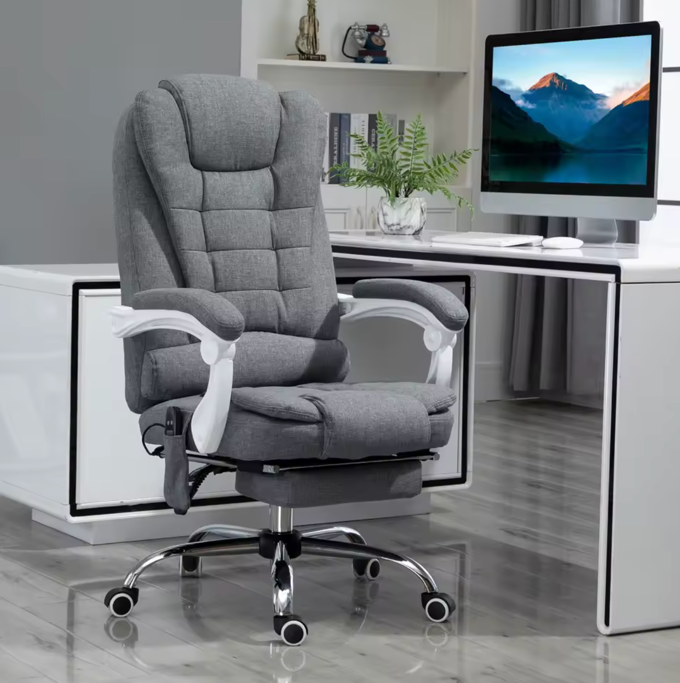 Massage Bureaustoel met Voetsteun en 6 Massagepunten – Grijs