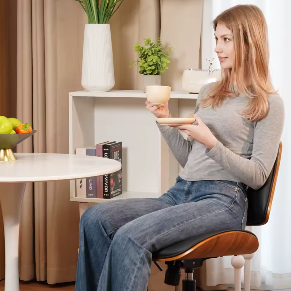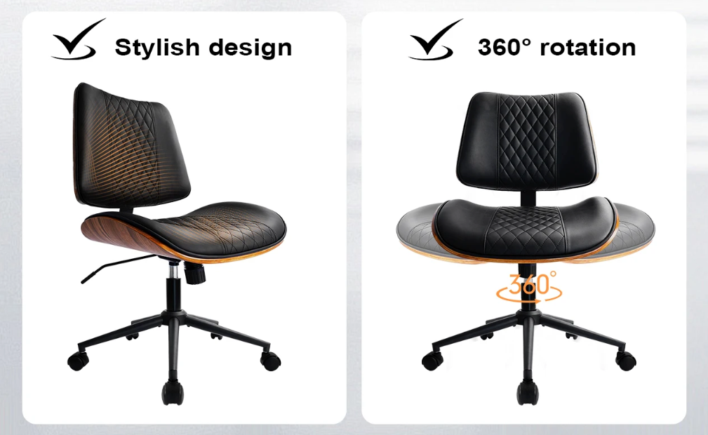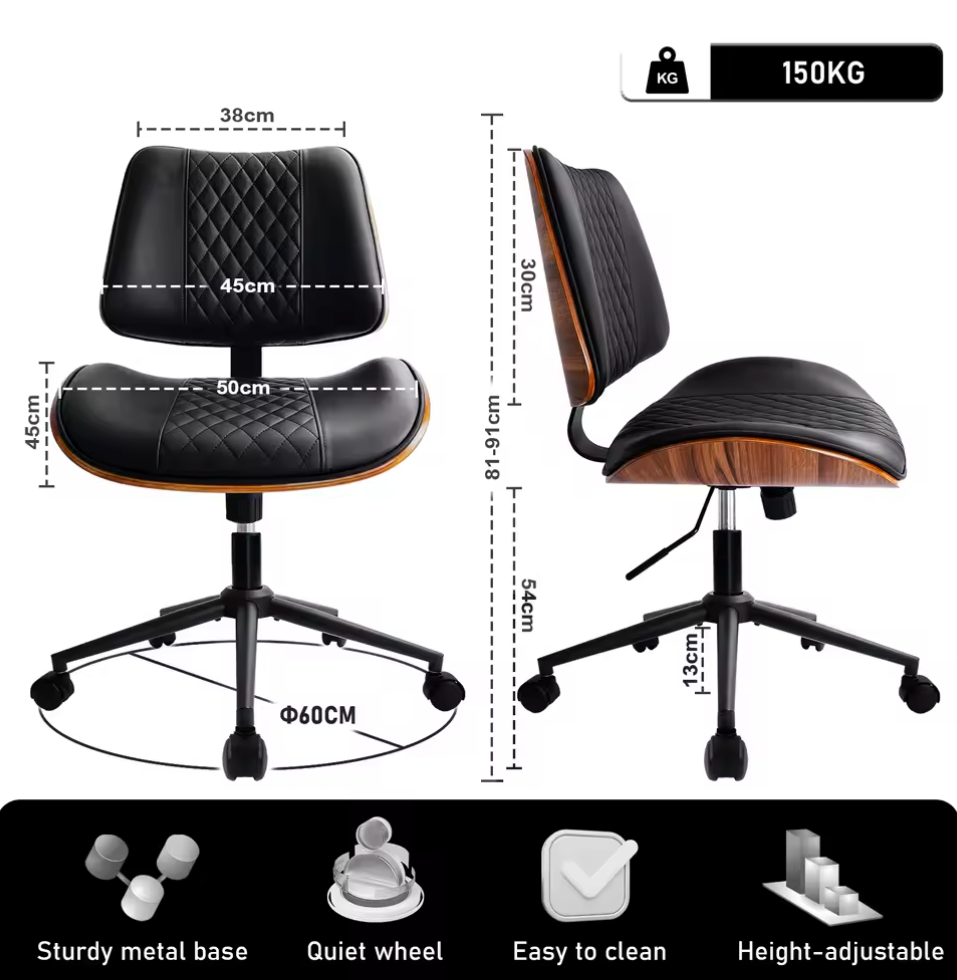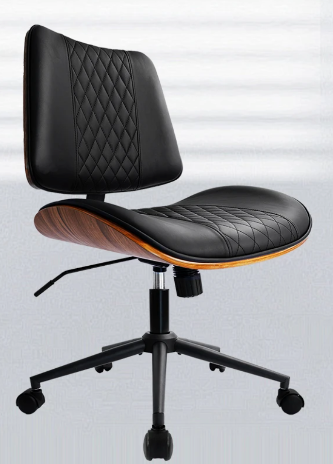 Moderne Bureaustoel Zonder Armleuningen – In Hoogte Verstelbaar, PU-Leder & Walnootlook