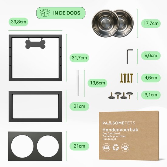 Deze handige Pawsomepets voerbak is een must-have voor iedere dierenvriend, maar ook voor degene met oog voor een stijlvol interieur. Met de 3 verschillende hoogtes zorgt u voor een goede lichaamshouding bij uw viervoeter tijdens het eten. Zo eet je kat of hond in comfort & houd je jouw huisdier fit en geniet je tegelijkertijd van een stijlvol ontwerp.