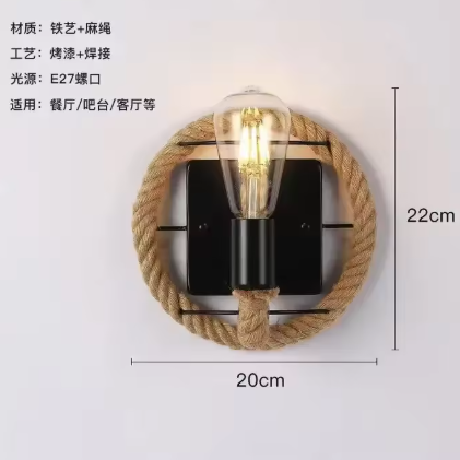 Geef je interieur een unieke uitstraling met deze retro industriële wandlamp. Het stevige ijzeren frame in combinatie met het met de hand geknoopte henneptouw zorgt voor een stoere, vintage look die perfect past in woonkamers, slaapkamers, gangen of trappenhuizen. Deze lamp is niet alleen een functionele lichtbron, maar ook een opvallend decoratief element dat karakter toevoegt aan elke ruimte.