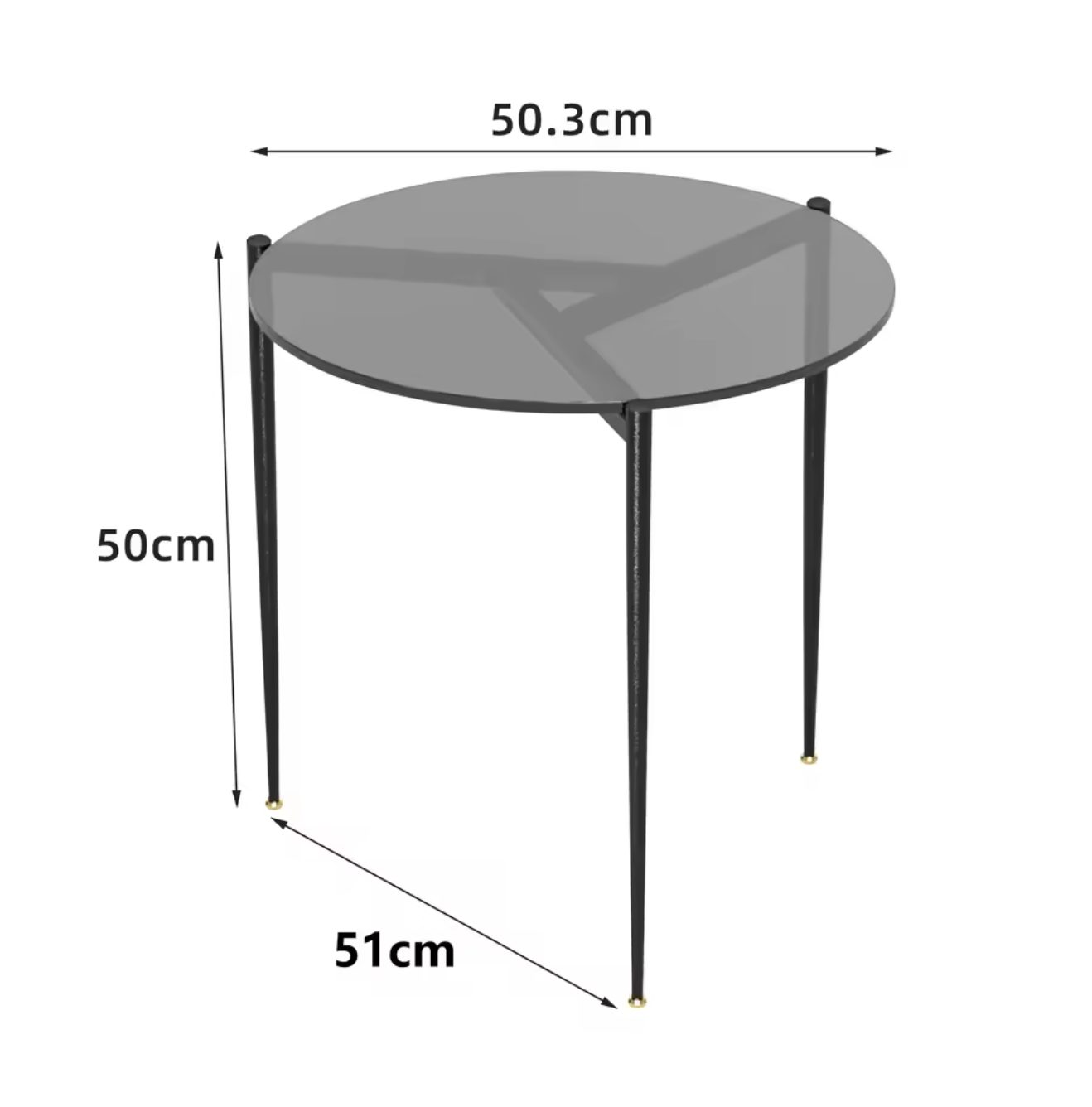 Geef je interieur een stijlvolle upgrade met deze moderne ronde bijzettafel. De combinatie van een elegant getint glazen tafelblad en slanke metalen poten creëert een verfijnde uitstraling die in elke ruimte tot zijn recht komt. Of je hem nu gebruikt als koffietafel, bijzettafel of decoratief accent, deze tafel is een functionele én decoratieve toevoeging aan je woonruimte.