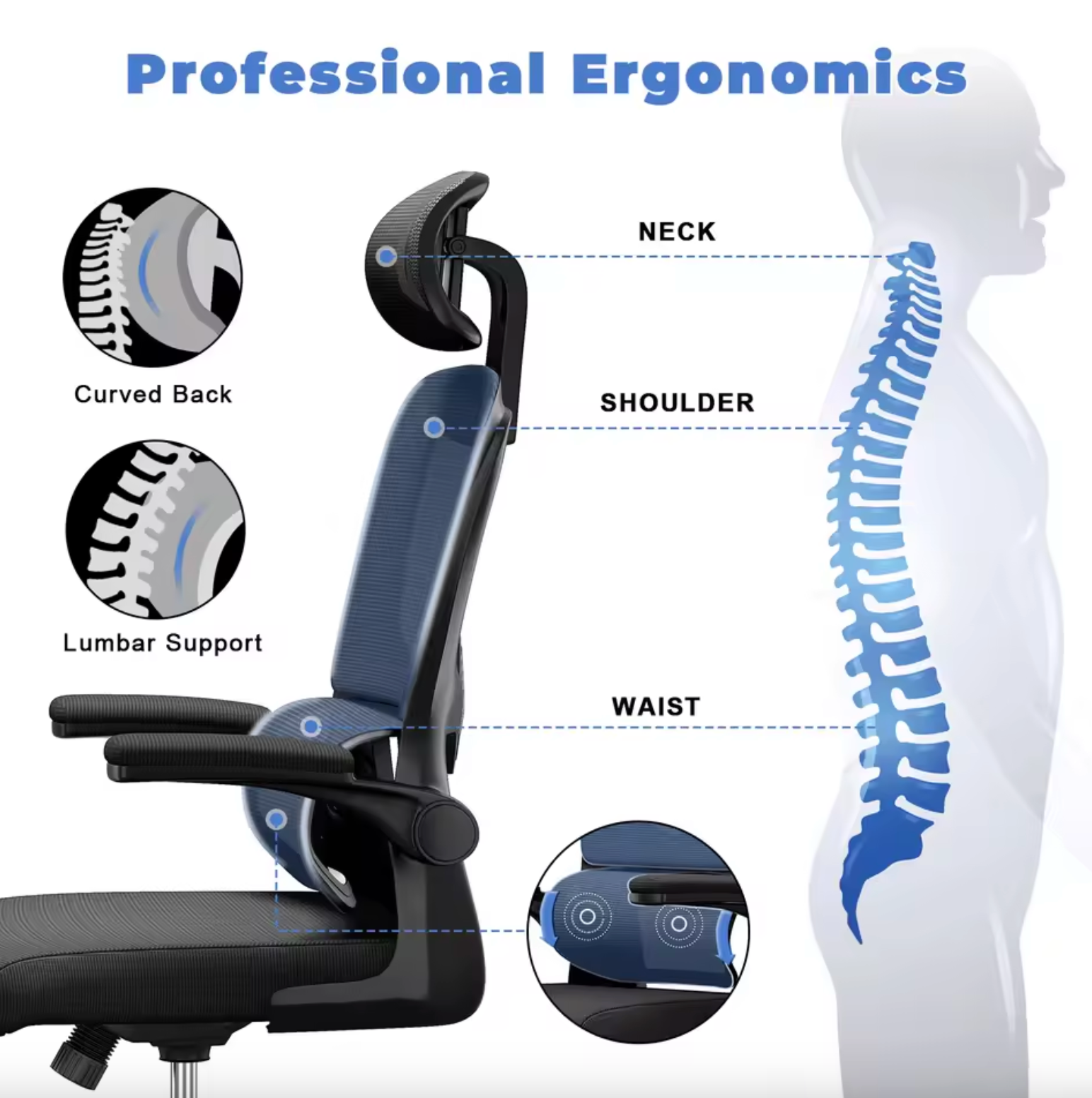 - Ergonomisch ontwerp – Ondersteunt nek, schouders, rug en taille voor een gezonde zithouding.