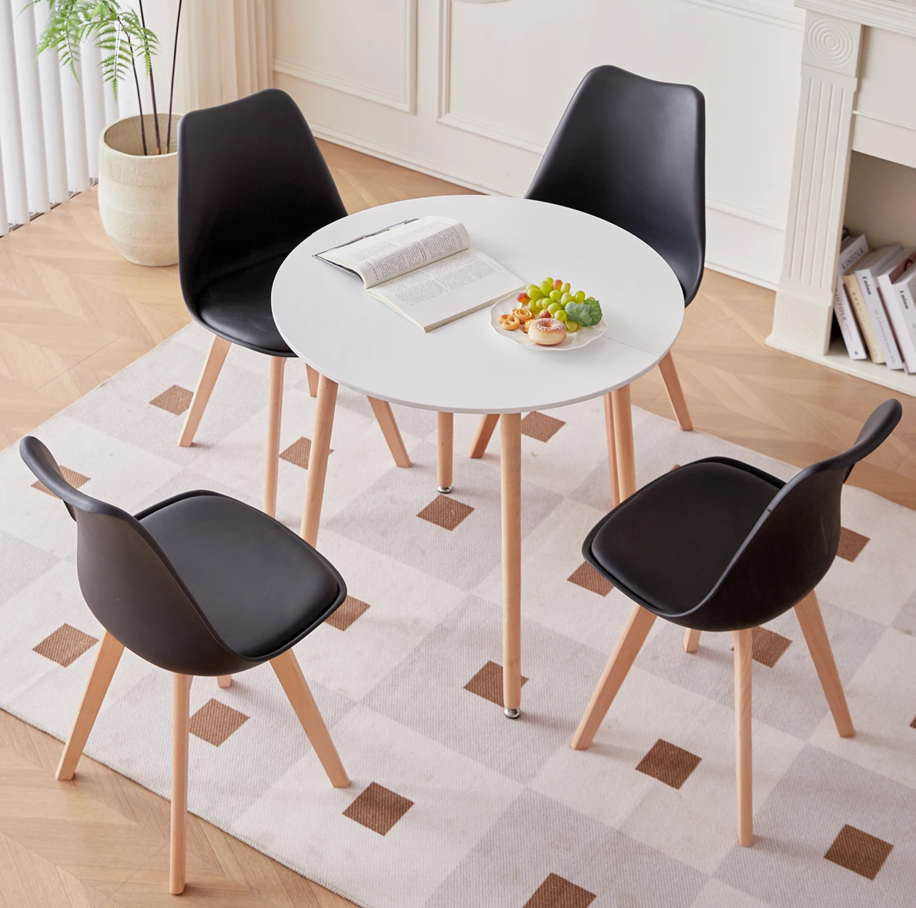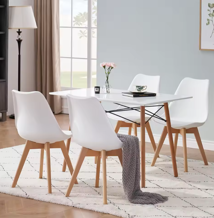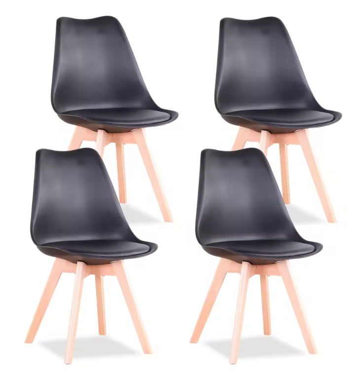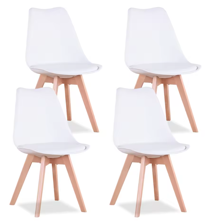 Breng Scandinavisch design in huis met deze Set van 4 Nordic Eetkamerstoelen, waar comfort, kwaliteit en stijl samenkomen. De stoelen zijn ontworpen met oog voor detail en ergonomie, met een mat afgewerkte polypropyleen kuip, zacht gewatteerd PU-kussen en stevige massief beukenhouten poten. Perfect voor elk interieur: van eetkamer tot kantoor of wachtruimte. Deze moderne stoelen bieden langdurig zitcomfort en een verfijnde uitstraling.