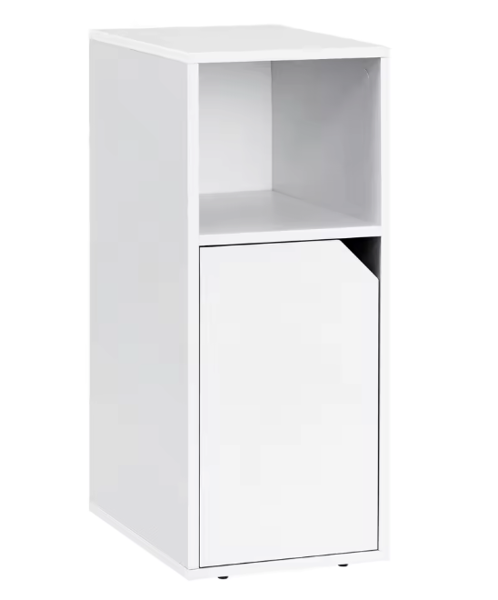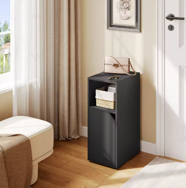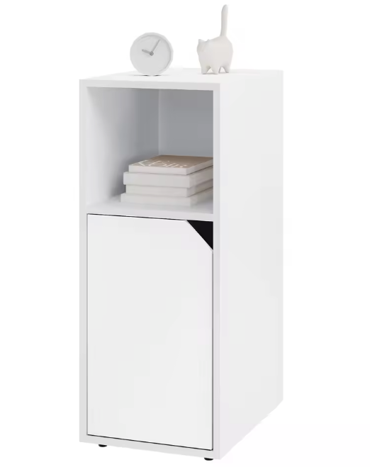 Geef jouw slaapkamer of woonkamer een praktische upgrade met dit smalle nachtkastje met verstelbare plank. Het compacte ontwerp past perfect in kleine ruimtes, terwijl de combinatie van een open vak, kastdeurtje en bovenblad voldoende opbergruimte biedt voor dagelijkse benodigdheden. Gemaakt van stevig houtmateriaal met krasbestendige afwerking.