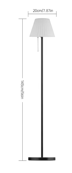 Materiaal: Metaal (basis en stang), kunststof lampenkap