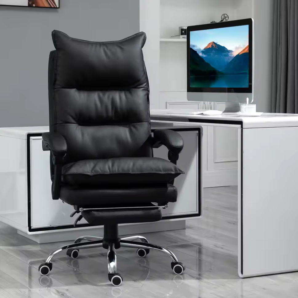 Verstelbare Bureaustoel – Zwart Kunstleer – Met Voetsteun
