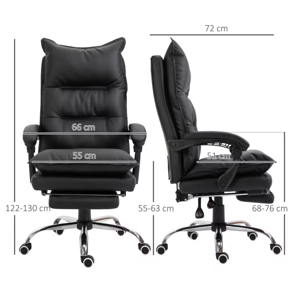 Ervaar ultiem comfort tijdens lange werkdagen met deze moderne bureaustoel in stijlvol zwart kunstleer. De stoel is volledig verstelbaar, inclusief een uitschuifbare voetsteun en kantelbare rugleuning, waardoor hij ideaal is voor werken, ontspannen of gamen. De ergonomische vormgeving ondersteunt je lichaam optimaal, terwijl het duurzame materiaal en stevige metalen frame langdurige kwaliteit garanderen.